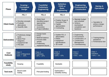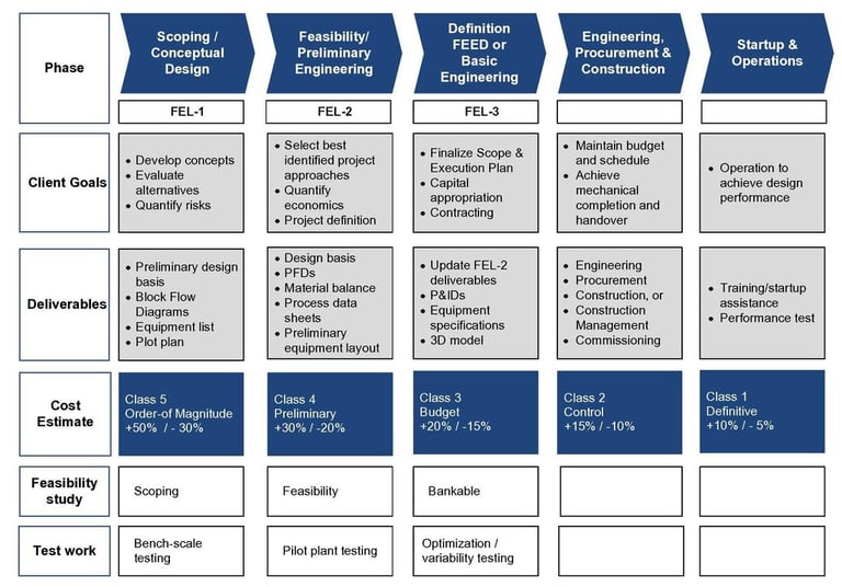 Our structured three-stage FEL process (FEL-1 Appraisal → FEL-2 Feasibility → FEL-3 FEED) consistently delivers: